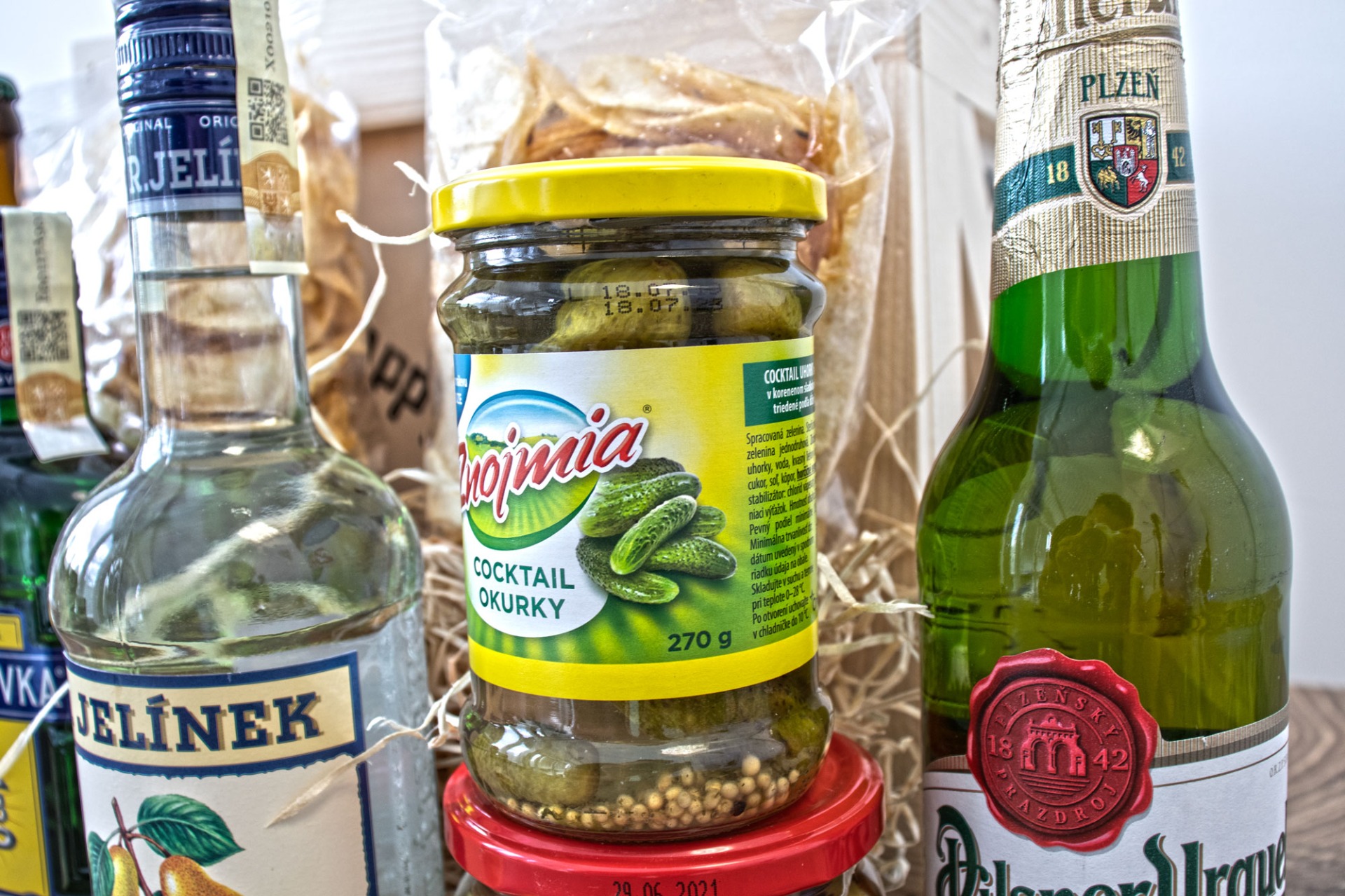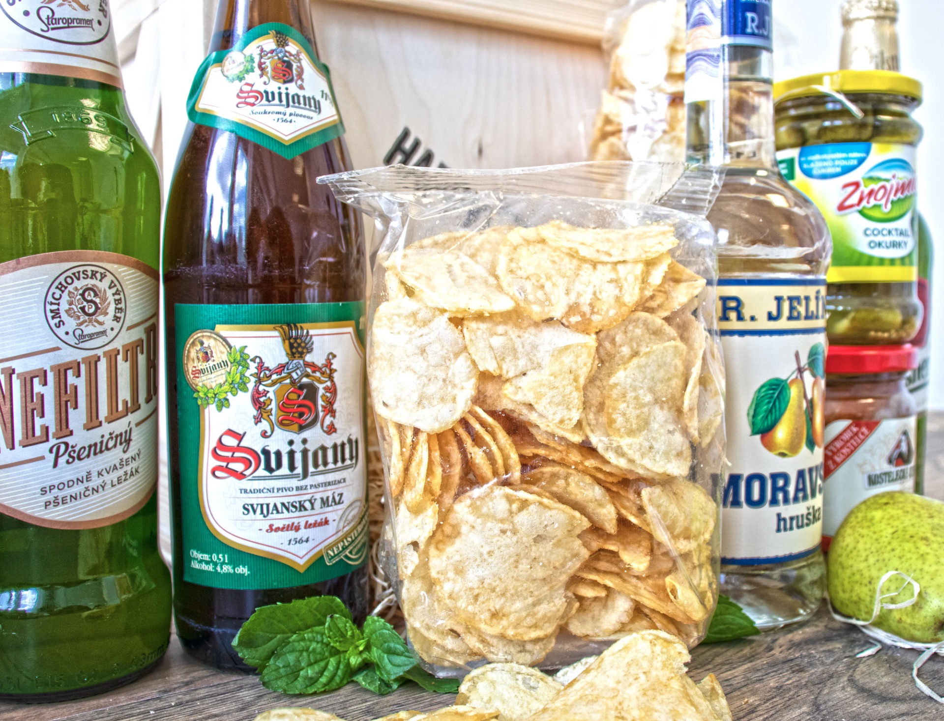 S pitím roste i chuť, proto se v CZECH BOX dárkové bedně nachází také dobroty k zakousnutí, které potěší každého muže. Najdete zde Originální hospodské solené brambůrky, křupavé sýrové tyčinky Bohemia a vynikající sušené hovězí maso (jerky) Fine Gusto. Nechybí však ani výborné koktejlové okurky Znojmia nebo utopenci z Kosteleckých uzenin.